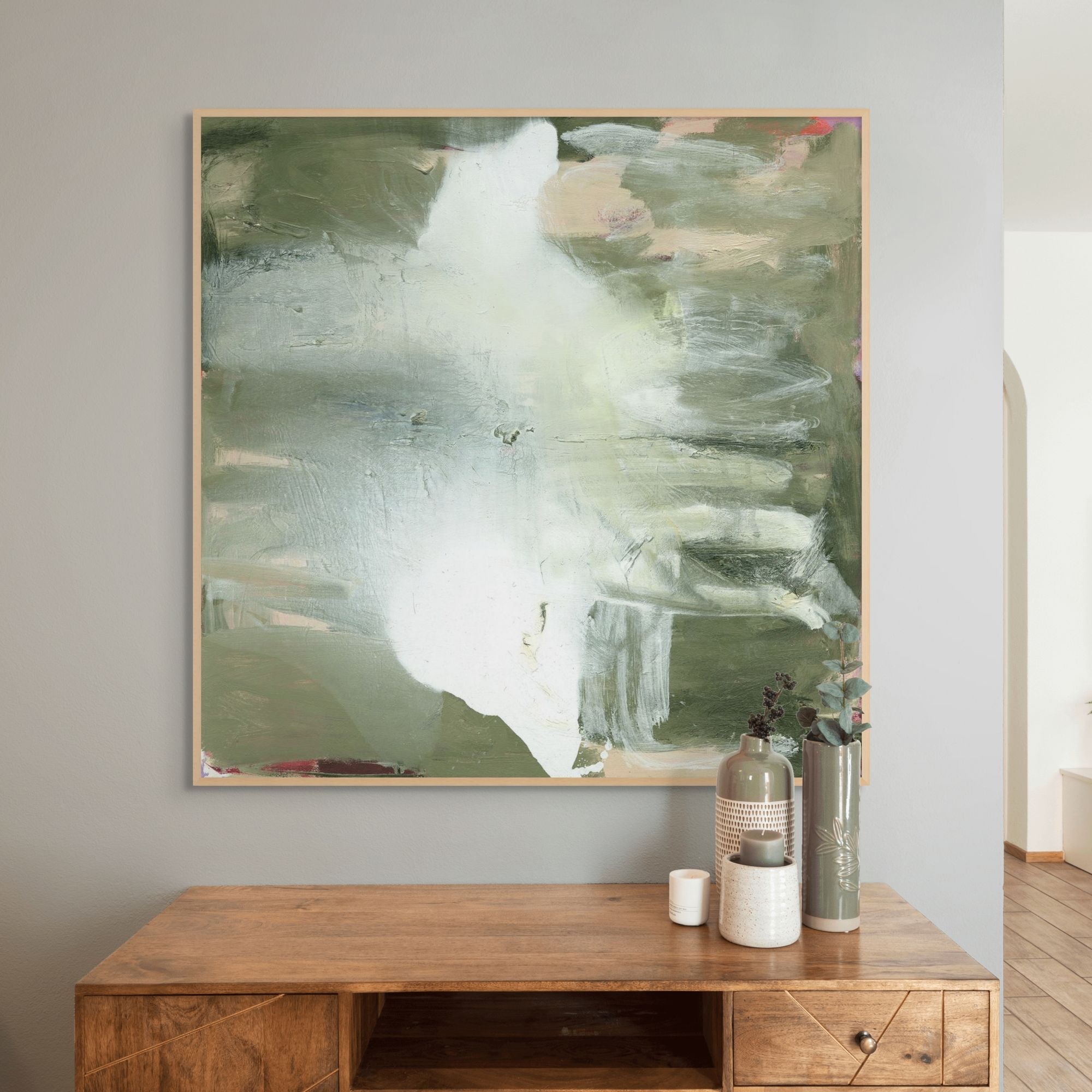 Framed Canvas are Giclée printed on 350gsm matte satin canvas and framed in our signature Canvas Float Frame. This specialty moulding has a 7mm face reveal and allows an elegant shadow line between the canvas and the frame. Canvas are printed 'edge to edge', with the image meeting the edge of the canvas.