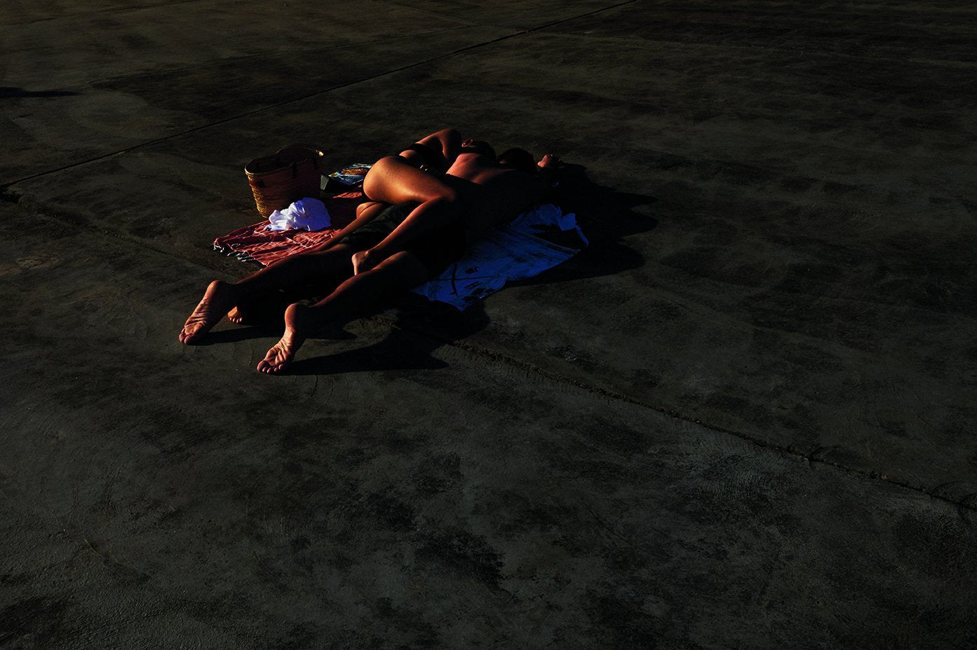 Heat explores the intimate relationship between humanity and nature. Fundamental to this work is the powerful force of water. The majority of the series is photographed from the perspective of the water. Capturing people entering the ocean, under it or bathing in it as storms approach. The work is a study relevant to our contemporary world; the juxtaposition of the pursuit of individual freedom in crowded spaces, the quiet vast privacy of being underwater in noisy, populated cosmopolitan areas, and the physical power the ocean has over the coastal dwellers. While the photos seek beauty, they are vibrant and and at times haunting reminders of our cultural and spiritual reliance on our beaches and the redemptive power of the ocean.