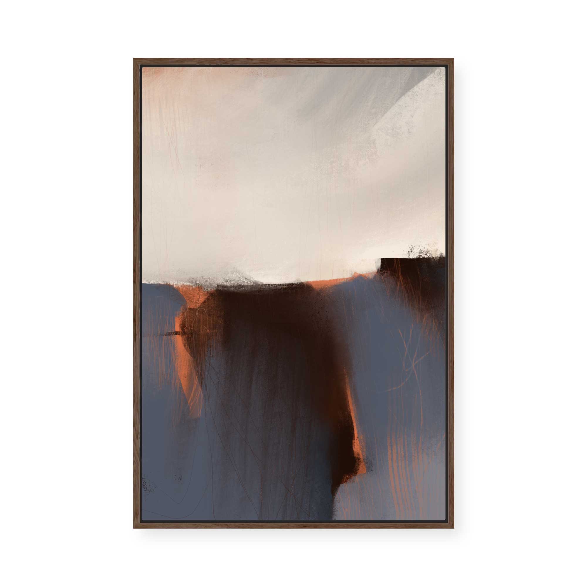 Framed Canvas are Giclée printed on 350gsm matte satin canvas and framed in our signature Canvas Float Frame. This specialty moulding has a 7mm face reveal and allows an elegant shadow line between the canvas and the frame. Canvas are printed 'edge to edge', with the image meeting the edge of the canvas.