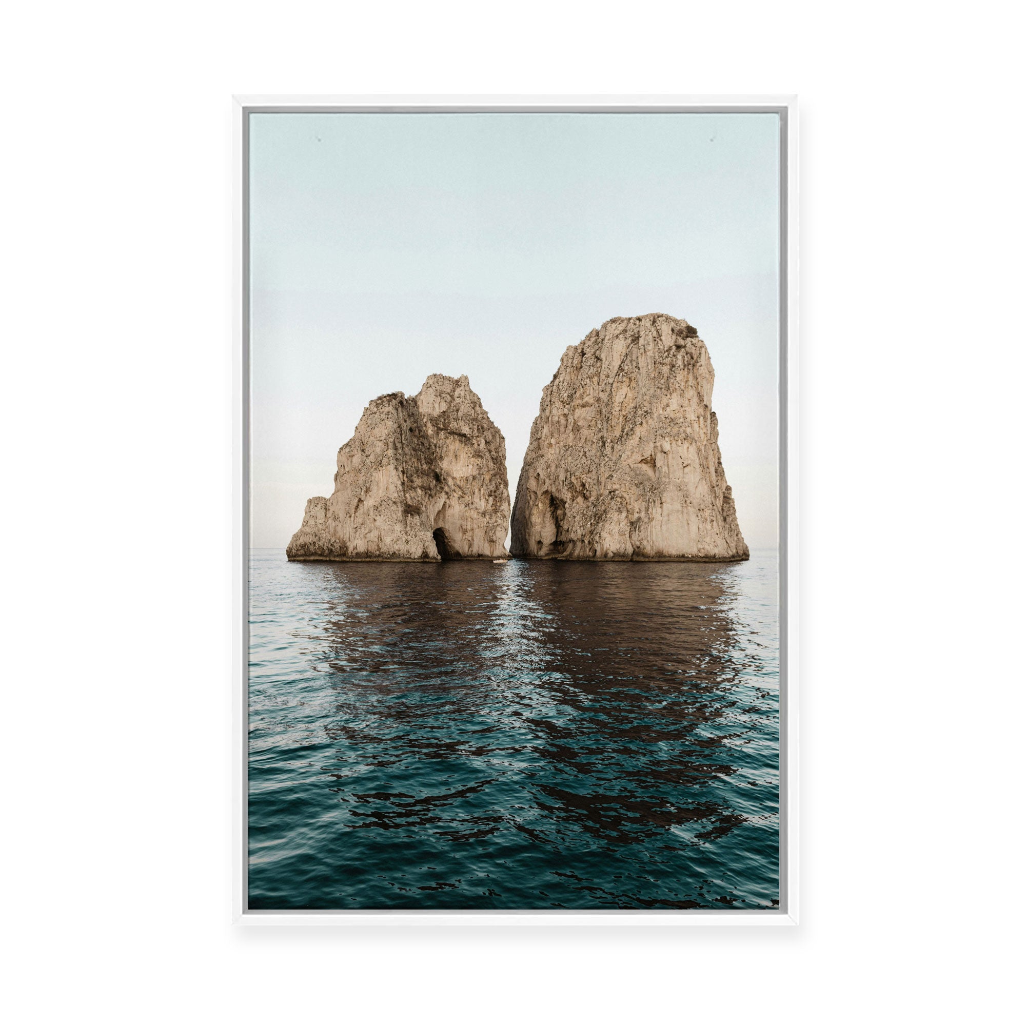 Framed Canvas are Giclée printed on 350gsm matte satin canvas and framed in our signature Canvas Float Frame. This specialty moulding has a 7mm face reveal and allows an elegant shadow line between the canvas and the frame. Canvas are printed 'edge to edge', with the image meeting the edge of the canvas.
