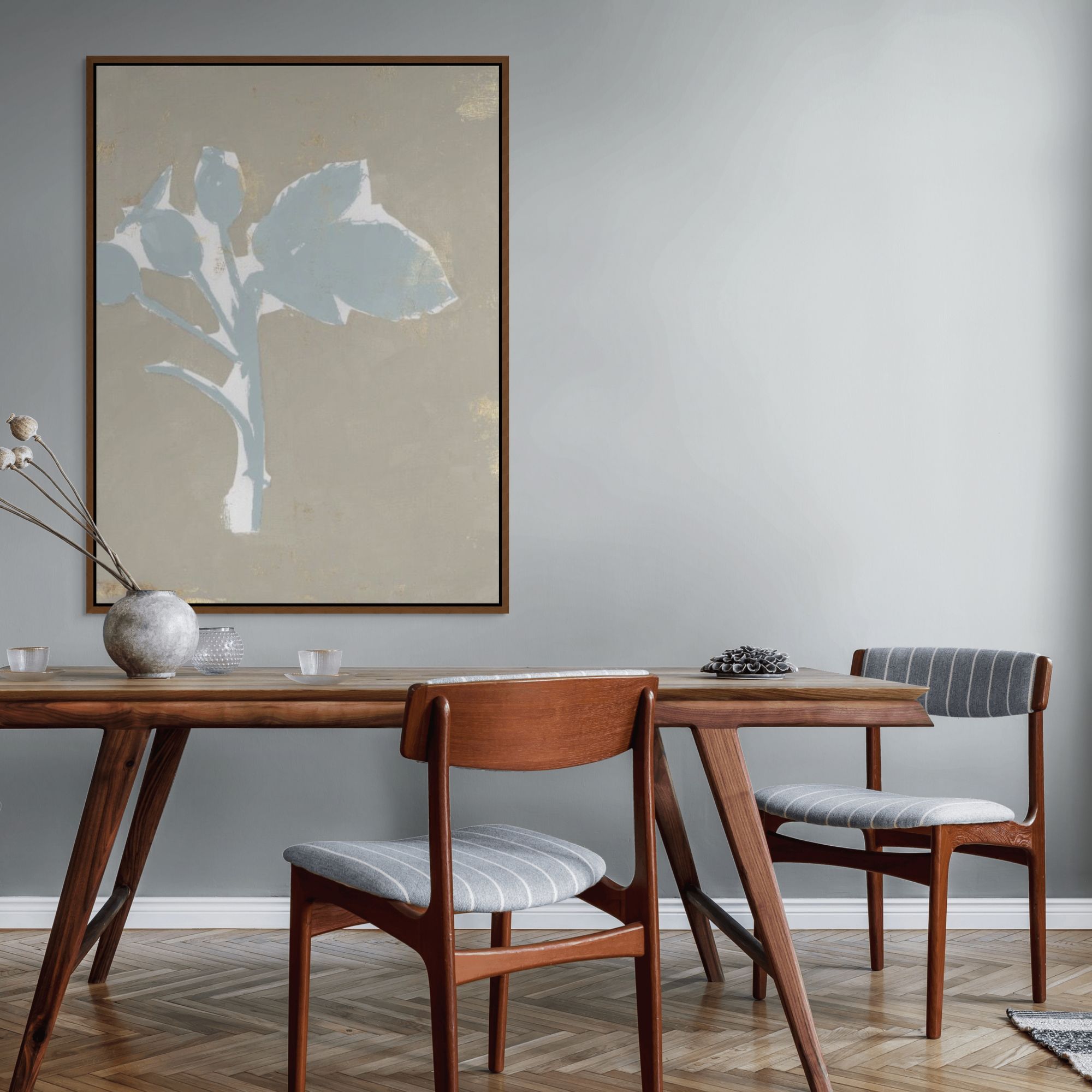 Framed Canvas are Giclée printed on 350gsm matte satin canvas and framed in our signature Canvas Float Frame. This specialty moulding has a 7mm face reveal and allows an elegant shadow line between the canvas and the frame. Canvas are printed 'edge to edge', with the image meeting the edge of the canvas.