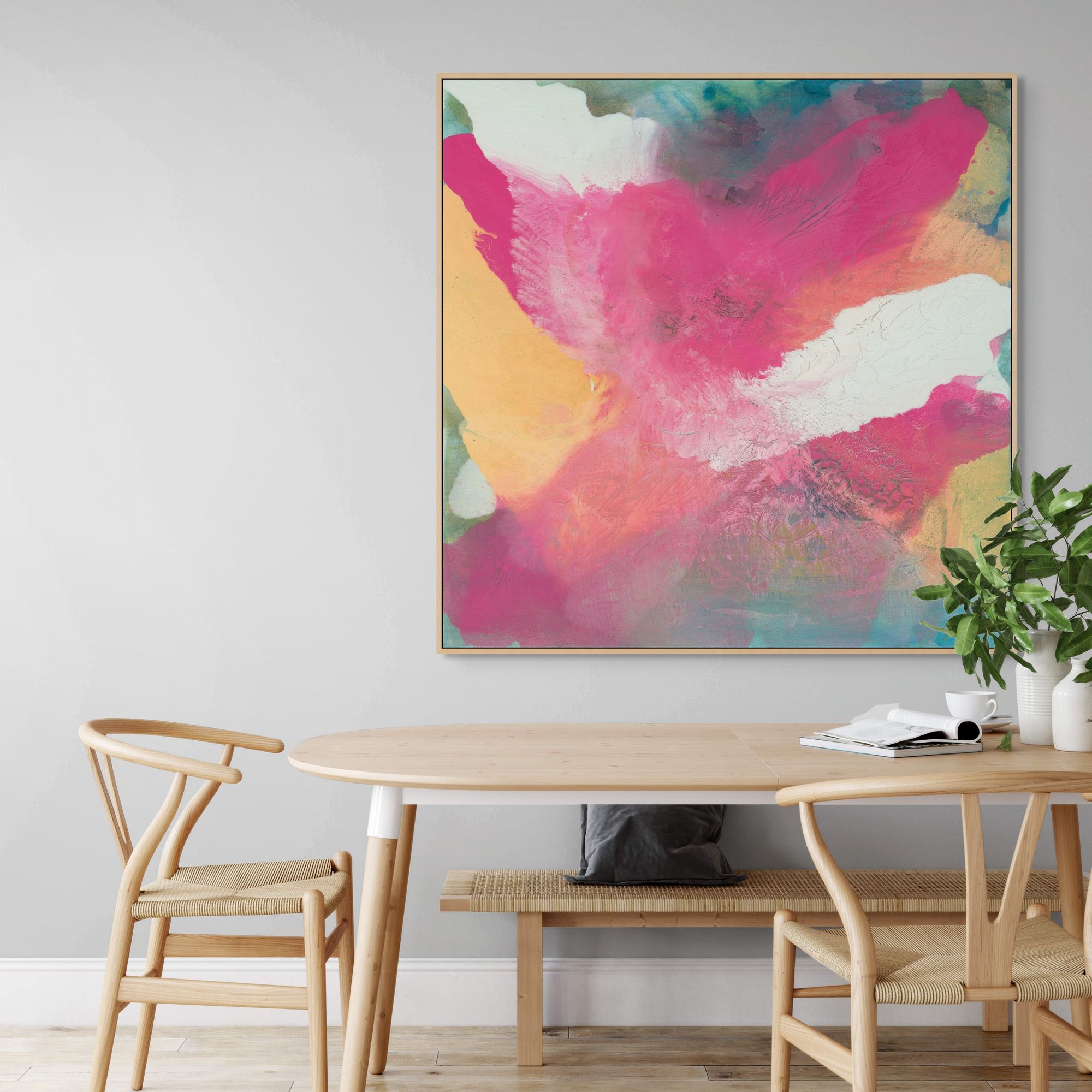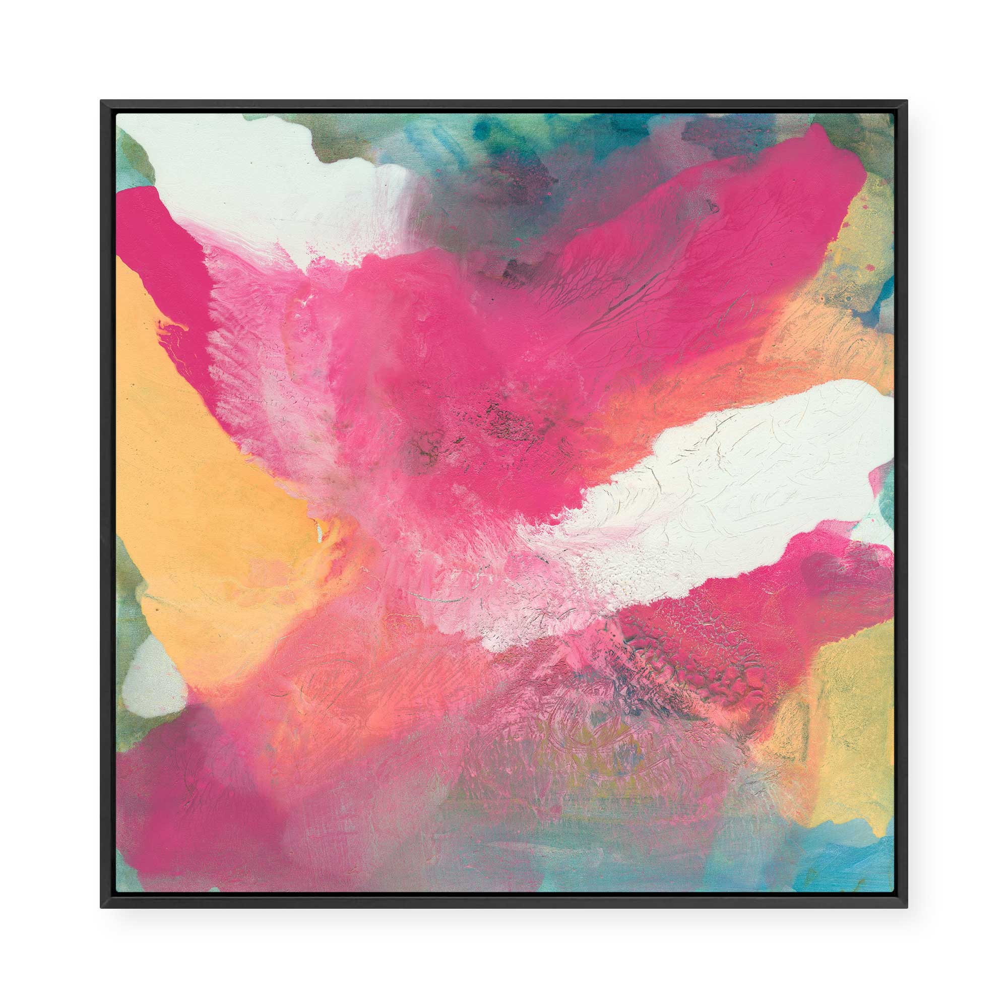 Framed Canvas are Giclée printed on 350gsm matte satin canvas and framed in our signature Canvas Float Frame. This specialty moulding has a 7mm face reveal and allows an elegant shadow line between the canvas and the frame. Canvas are printed 'edge to edge', with the image meeting the edge of the canvas.