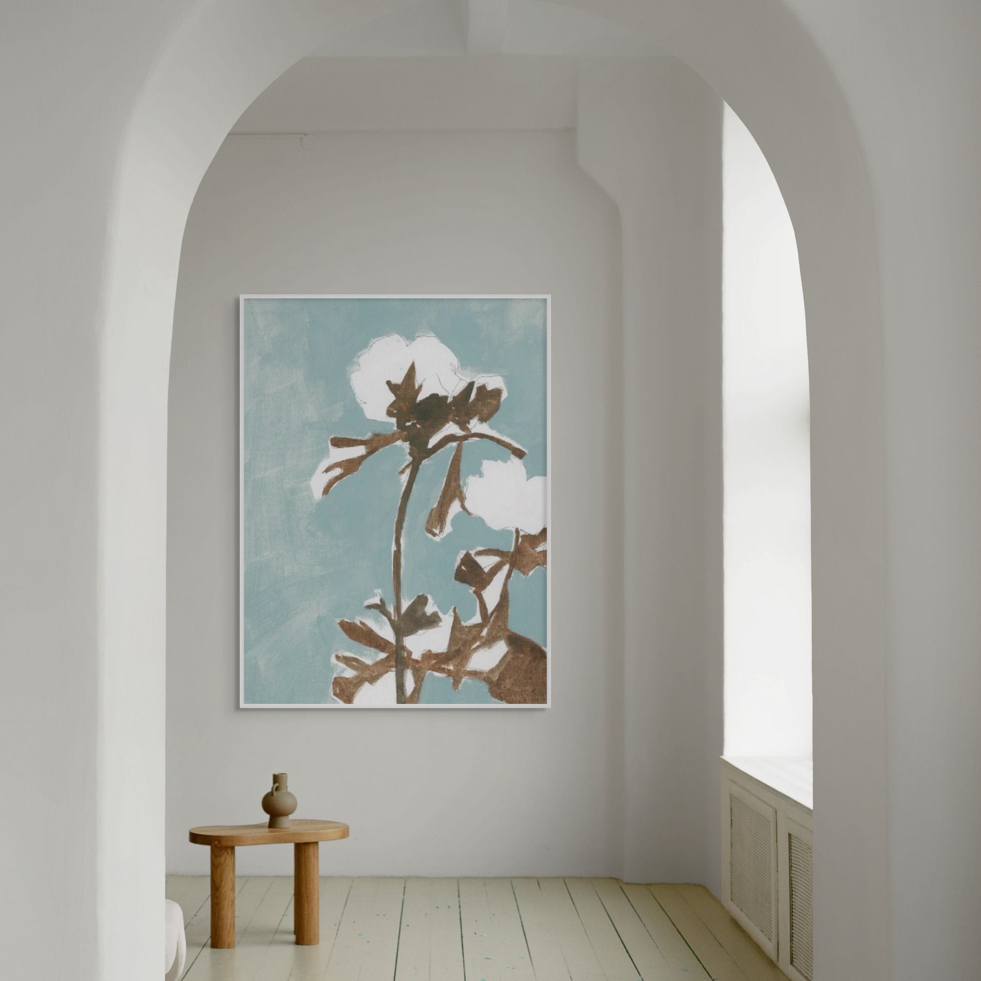 Framed Canvas are Giclée printed on 350gsm matte satin canvas and framed in our signature Canvas Float Frame. This specialty moulding has a 7mm face reveal and allows an elegant shadow line between the canvas and the frame. Canvas are printed 'edge to edge', with the image meeting the edge of the canvas.