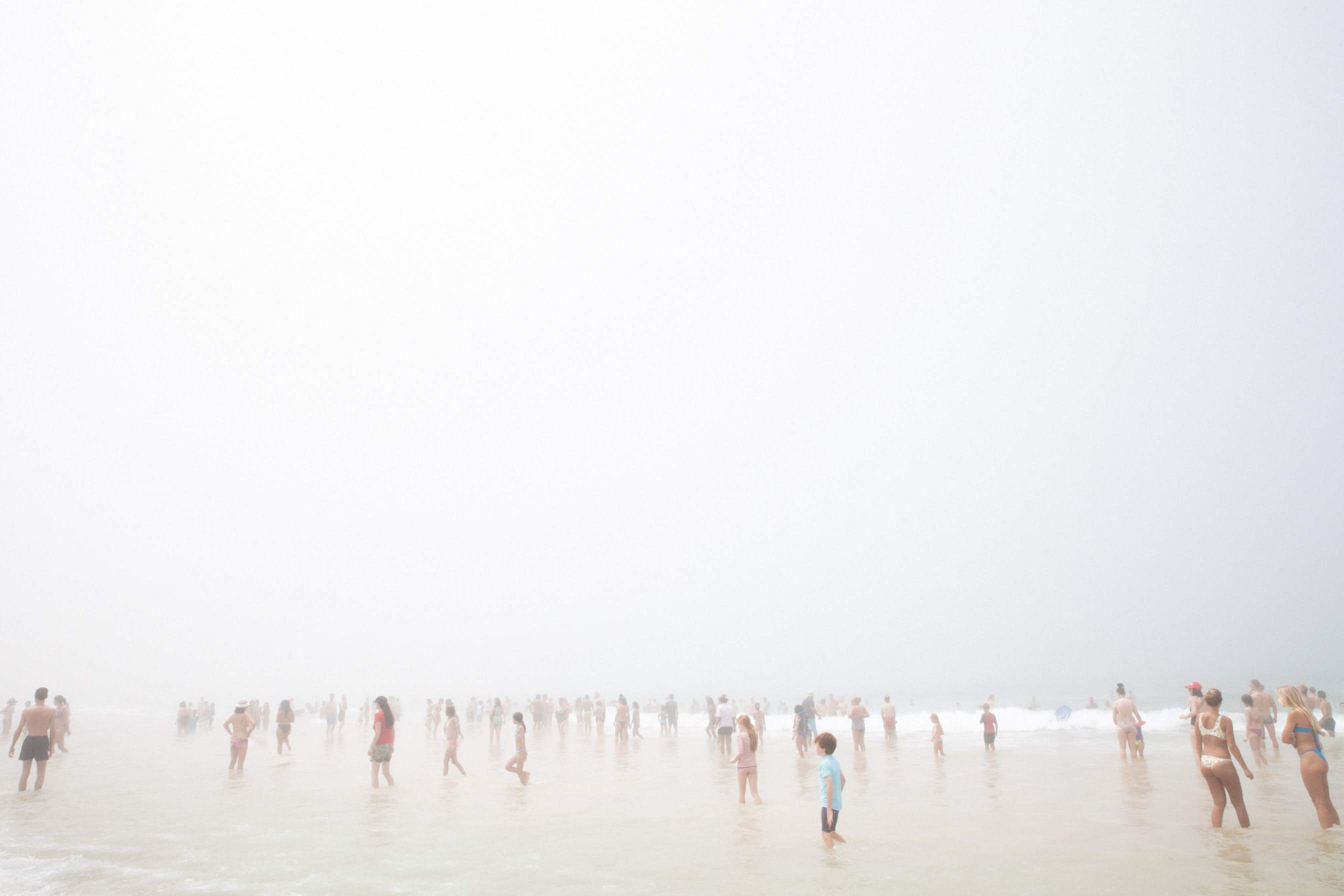 Heat explores the intimate relationship between humanity and nature. Fundamental to this work is the powerful force of water. The majority of the series is photographed from the perspective of the water. Capturing people entering the ocean, under it or bathing in it as storms approach. The work is a study relevant to our contemporary world; the juxtaposition of the pursuit of individual freedom in crowded spaces, the quiet vast privacy of being underwater in noisy, populated cosmopolitan areas, and the physical power the ocean has over the coastal dwellers. While the photos seek beauty, they are vibrant and and at times haunting reminders of our cultural and spiritual reliance on our beaches and the redemptive power of the ocean.