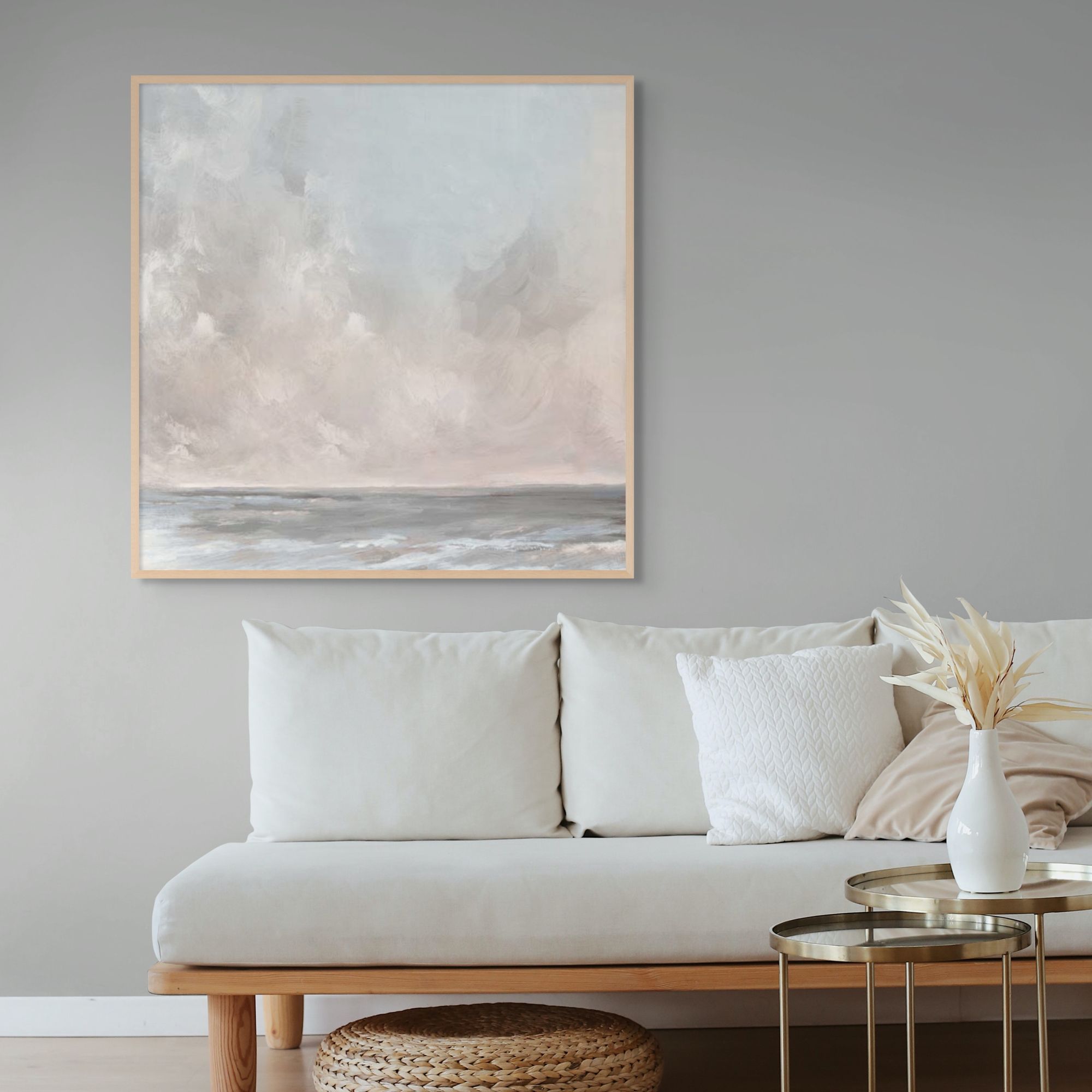 Framed Canvas are Giclée printed on 350gsm matte satin canvas and framed in our signature Canvas Float Frame. This specialty moulding has a 7mm face reveal and allows an elegant shadow line between the canvas and the frame. Canvas are printed 'edge to edge', with the image meeting the edge of the canvas.