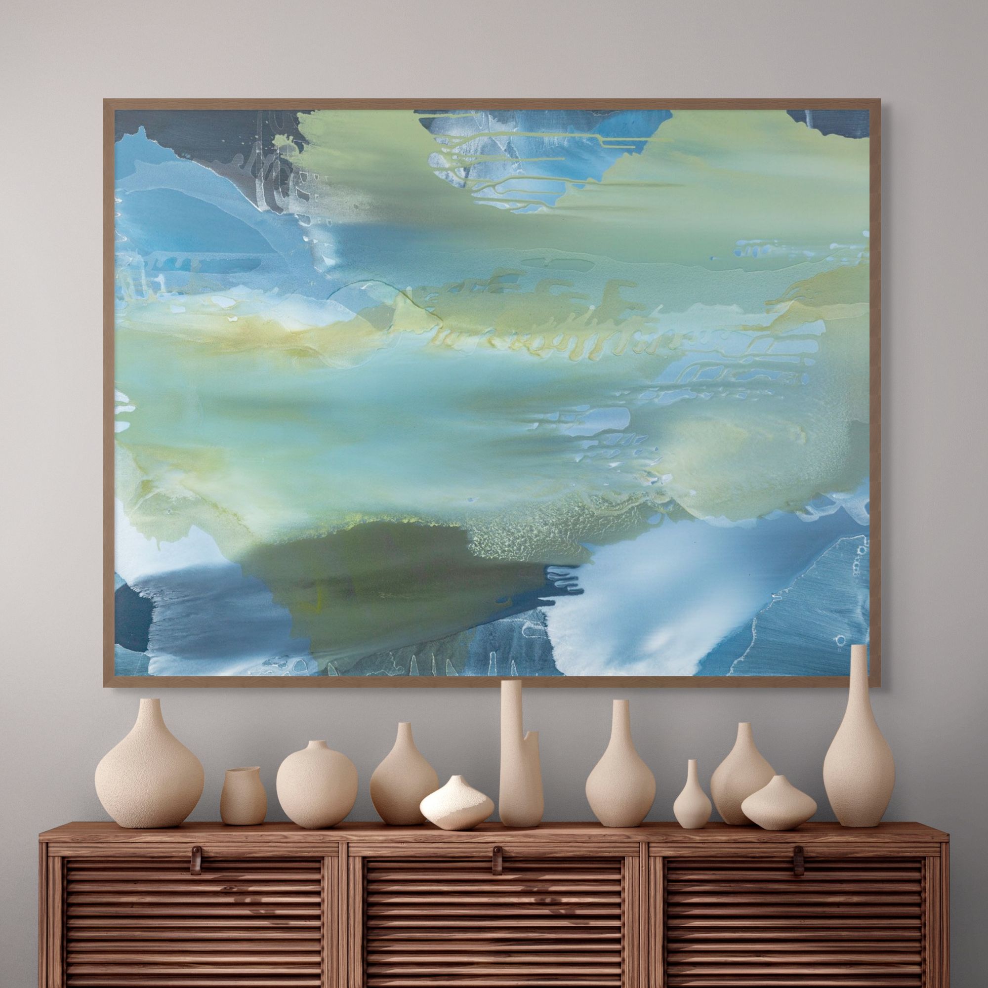 Framed Canvas are Giclée printed on 350gsm matte satin canvas and framed in our signature Canvas Float Frame. This specialty moulding has a 7mm face reveal and allows an elegant shadow line between the canvas and the frame. Canvas are printed 'edge to edge', with the image meeting the edge of the canvas.