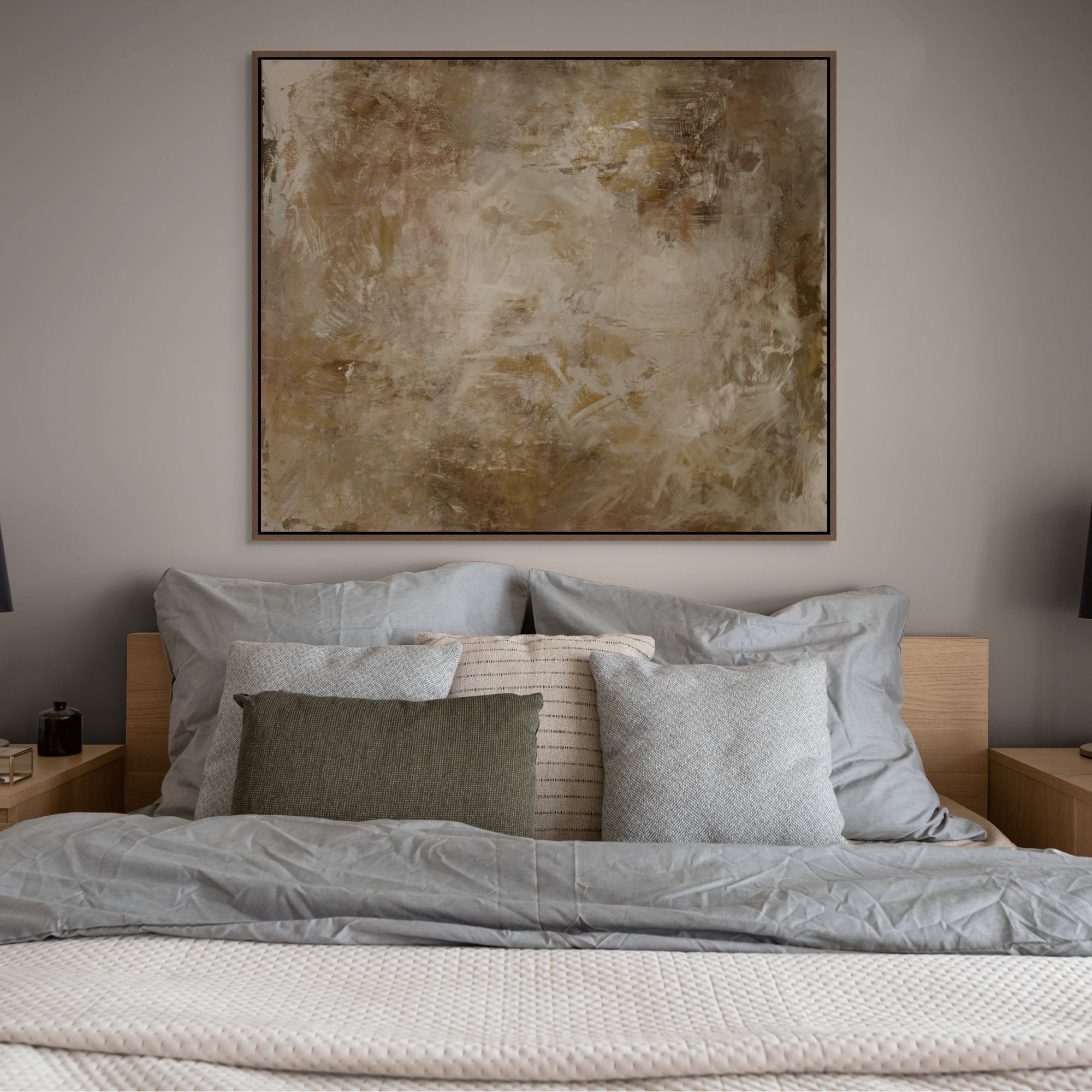 Framed Canvas are Giclée printed on 350gsm matte satin canvas and framed in our signature Canvas Float Frame. This specialty moulding has a 7mm face reveal and allows an elegant shadow line between the canvas and the frame. Canvas are printed 'edge to edge', with the image meeting the edge of the canvas.