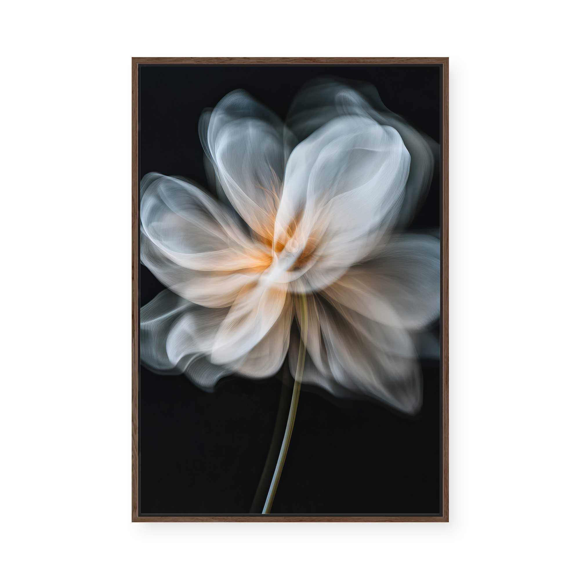 Framed Canvas are Giclée printed on 350gsm matte satin canvas and framed in our signature Canvas Float Frame. This specialty moulding has a 7mm face reveal and allows an elegant shadow line between the canvas and the frame. Canvas are printed 'edge to edge', with the image meeting the edge of the canvas.