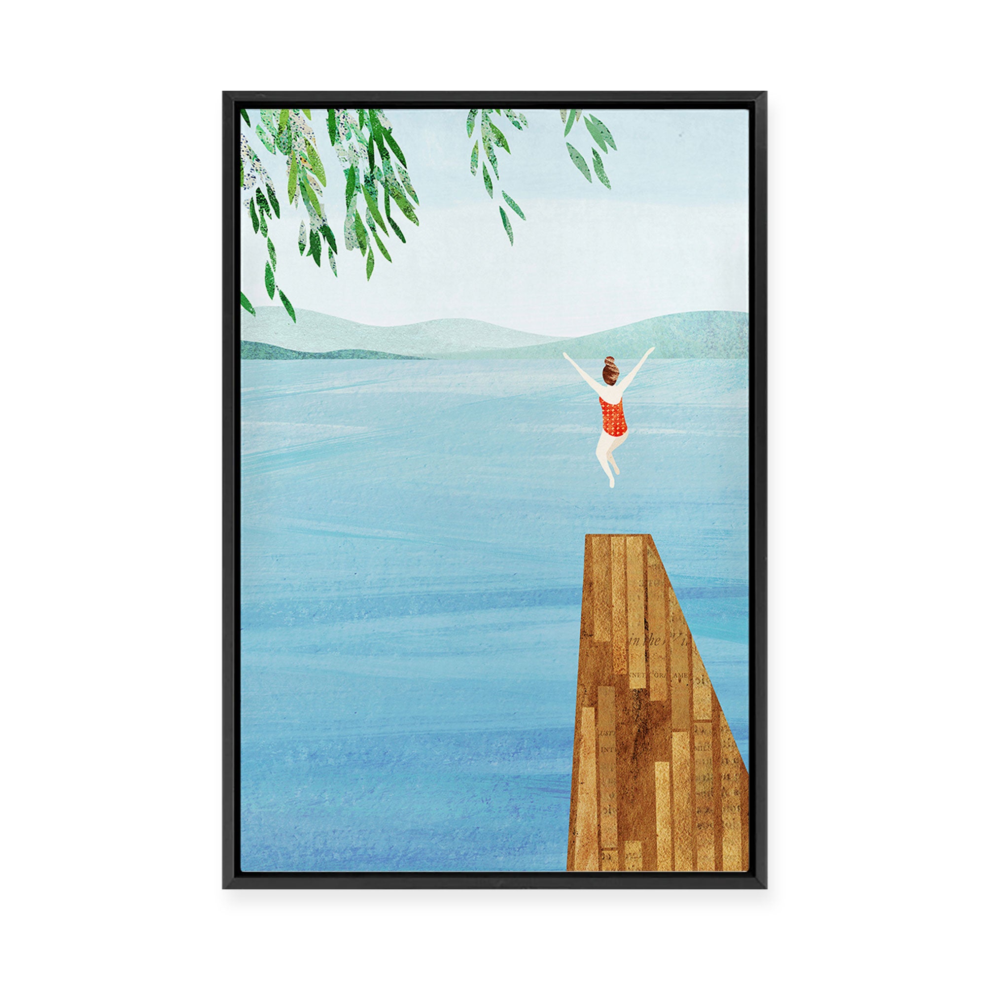 Working in a combination of hand-painted and digital techniques, Henry creates richly textured artworks with a sense of calm and escapism.